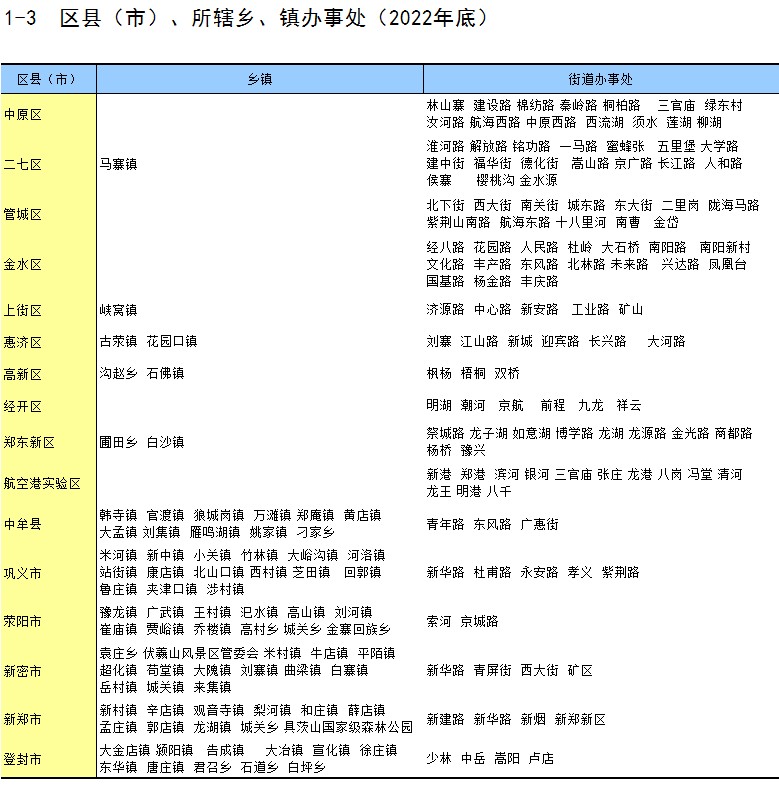 1-3 区县(市)、所辖乡、镇办事处(2022年底)