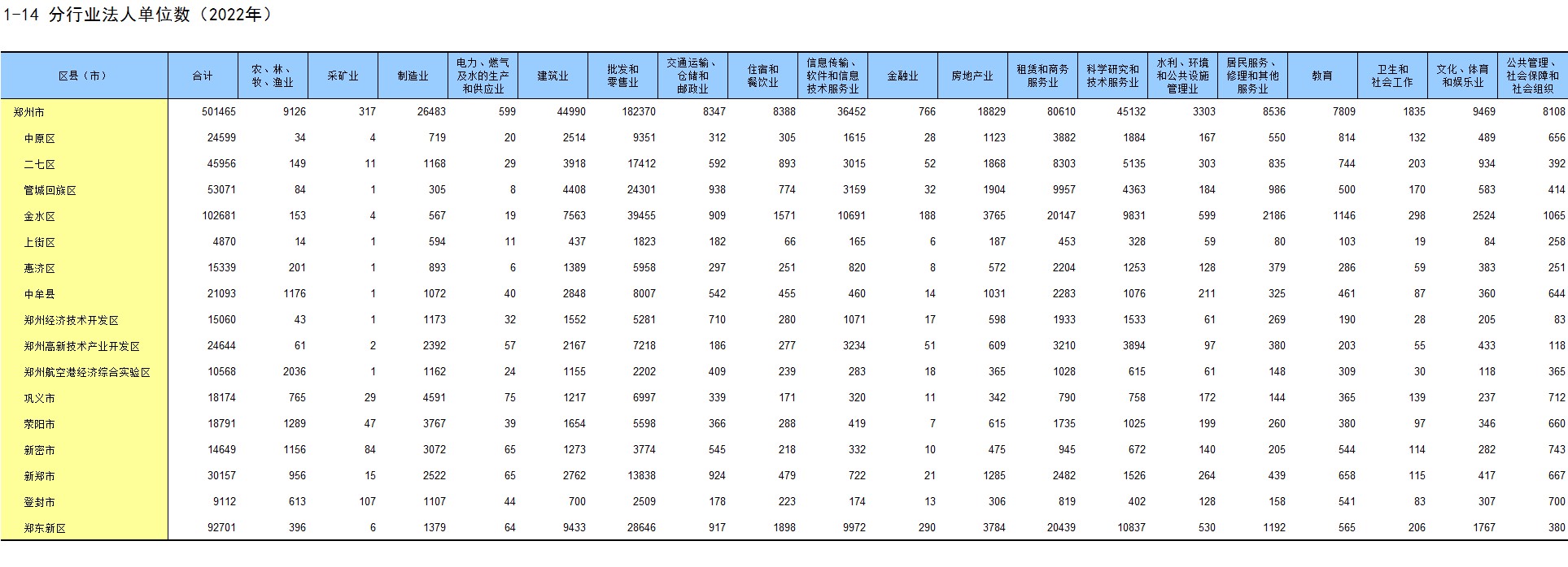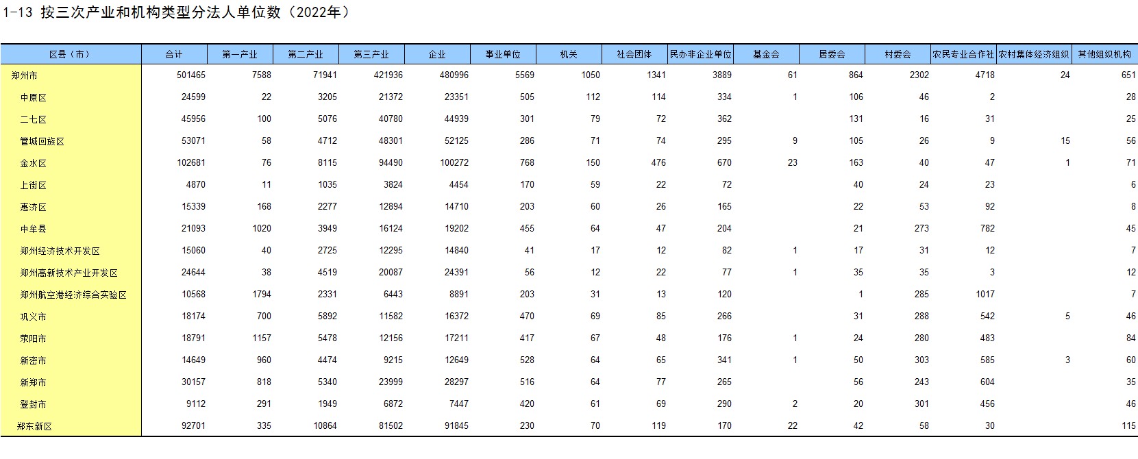 1-13 按三次产业和机构类型分法人单位数(2022年)