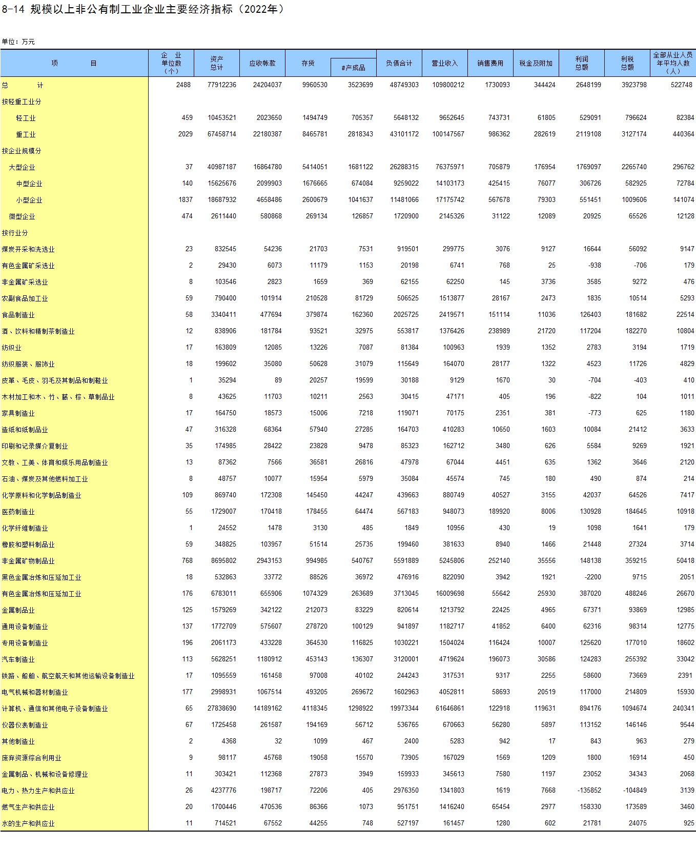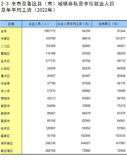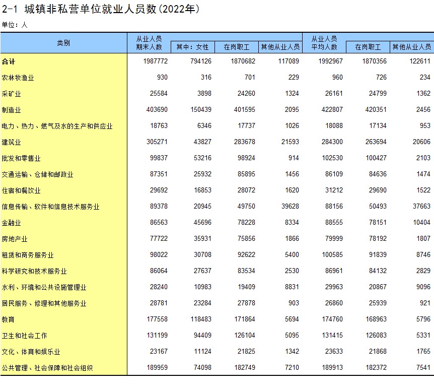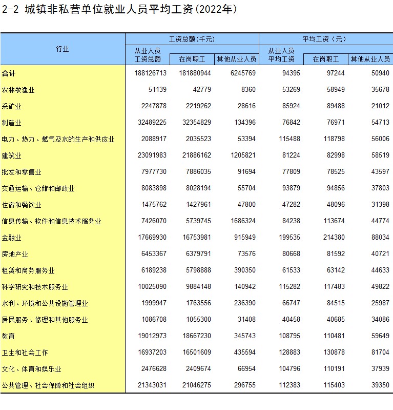 2-2 城镇非私营单位就业人员平均工资(2022年)