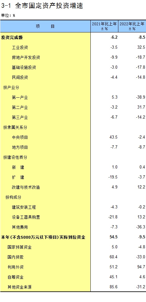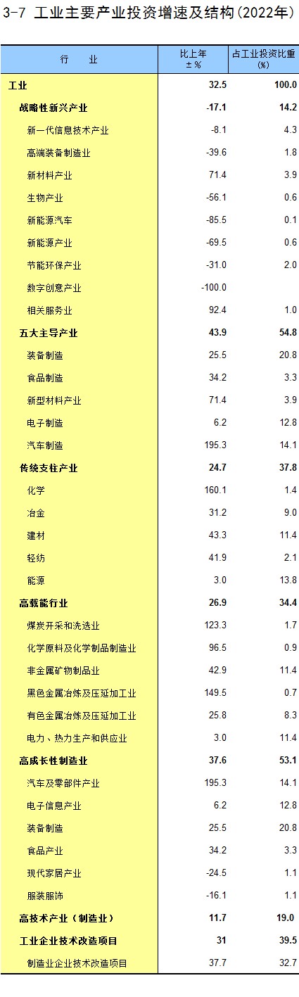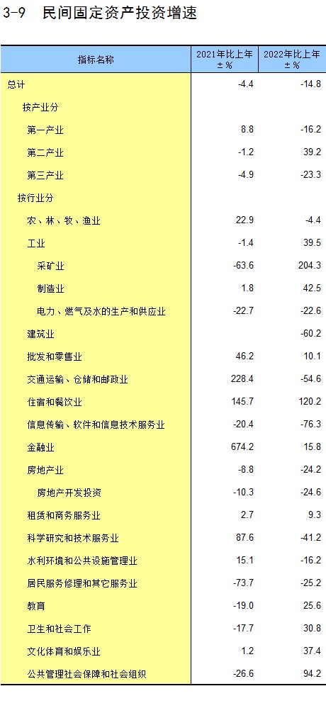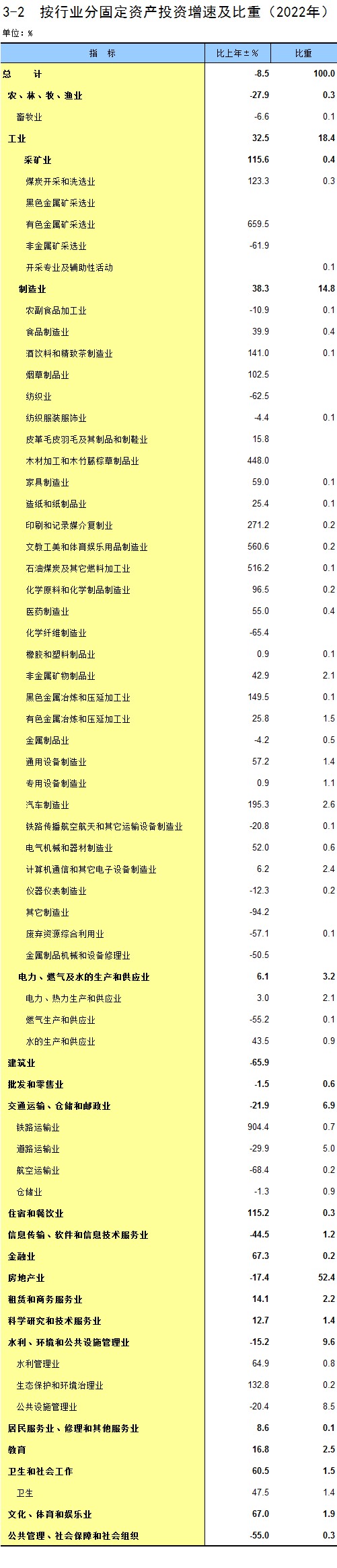3-2 按行业分固定资产投资增速及比重(2022年)