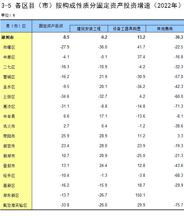 3-5 各区县(市)按构成性质分固定资产投资增速(2022年)