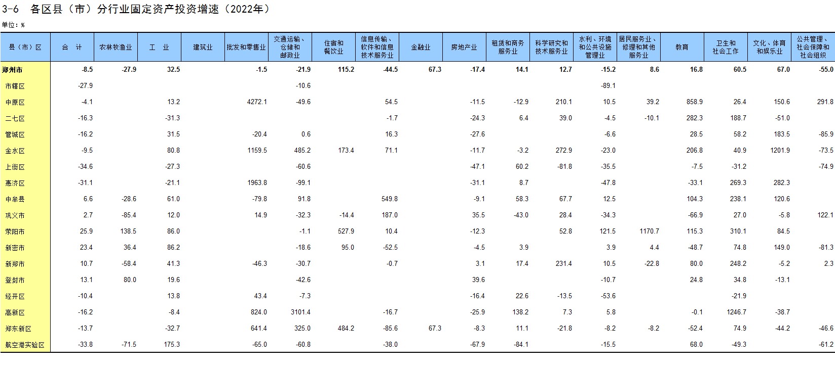 3-6 各区县(市)分行业固定资产投资增速(2022年)