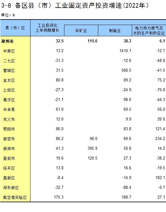 3-8 各区县(市)工业固定资产投资增速(2022年)