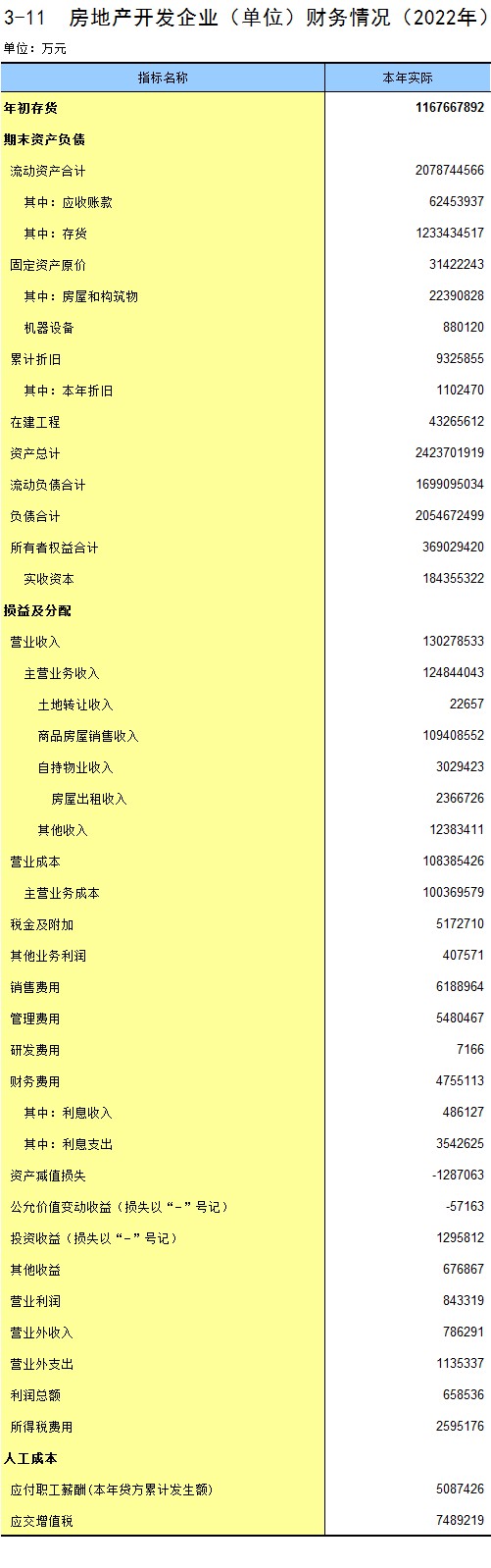 3-11 房地产开发企业(单位)财务情况(2022年)