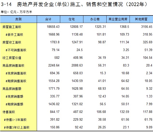 3-14 房地产开发企业(单位)施工、销售和空置情况(2022年)
