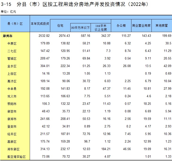 3-15 分县(市)区按工程用途分房地产开发投资情况(2022年)