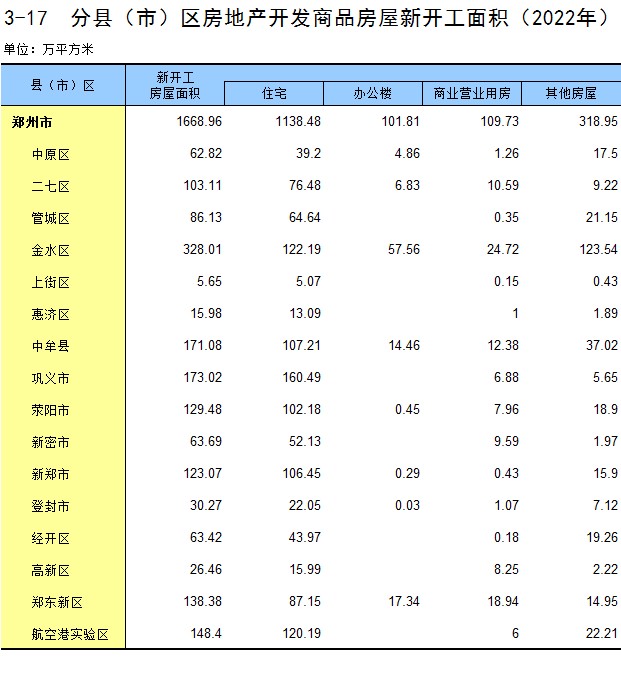 3-17 分县(市)区房地产开发商品房屋新开工面积(2022年)