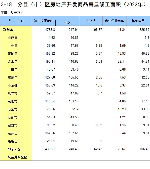 3-18 分县(市)区房地产开发商品房屋竣工面积(2022年)