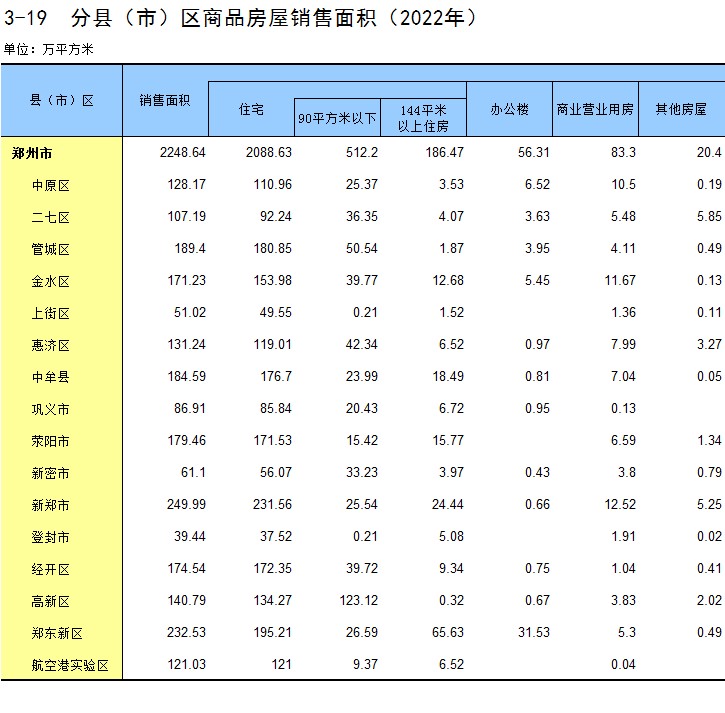 3-19 分县(市)区商品房屋销售面积(2022年)