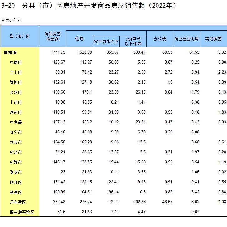 3-20 分县(市)区房地产开发商品房屋销售额(2022年)