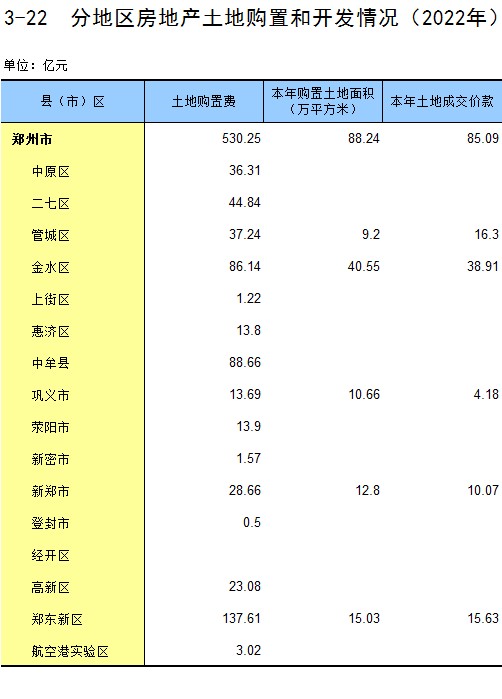 3-22 分地区房地产土地购置和开发情况(2022年)