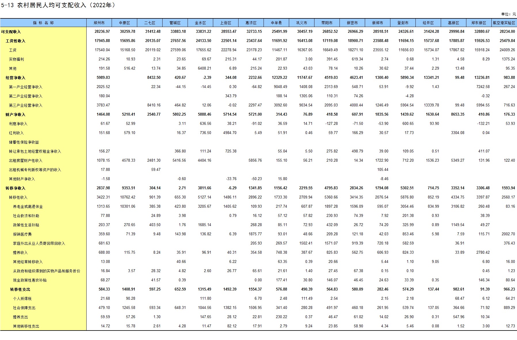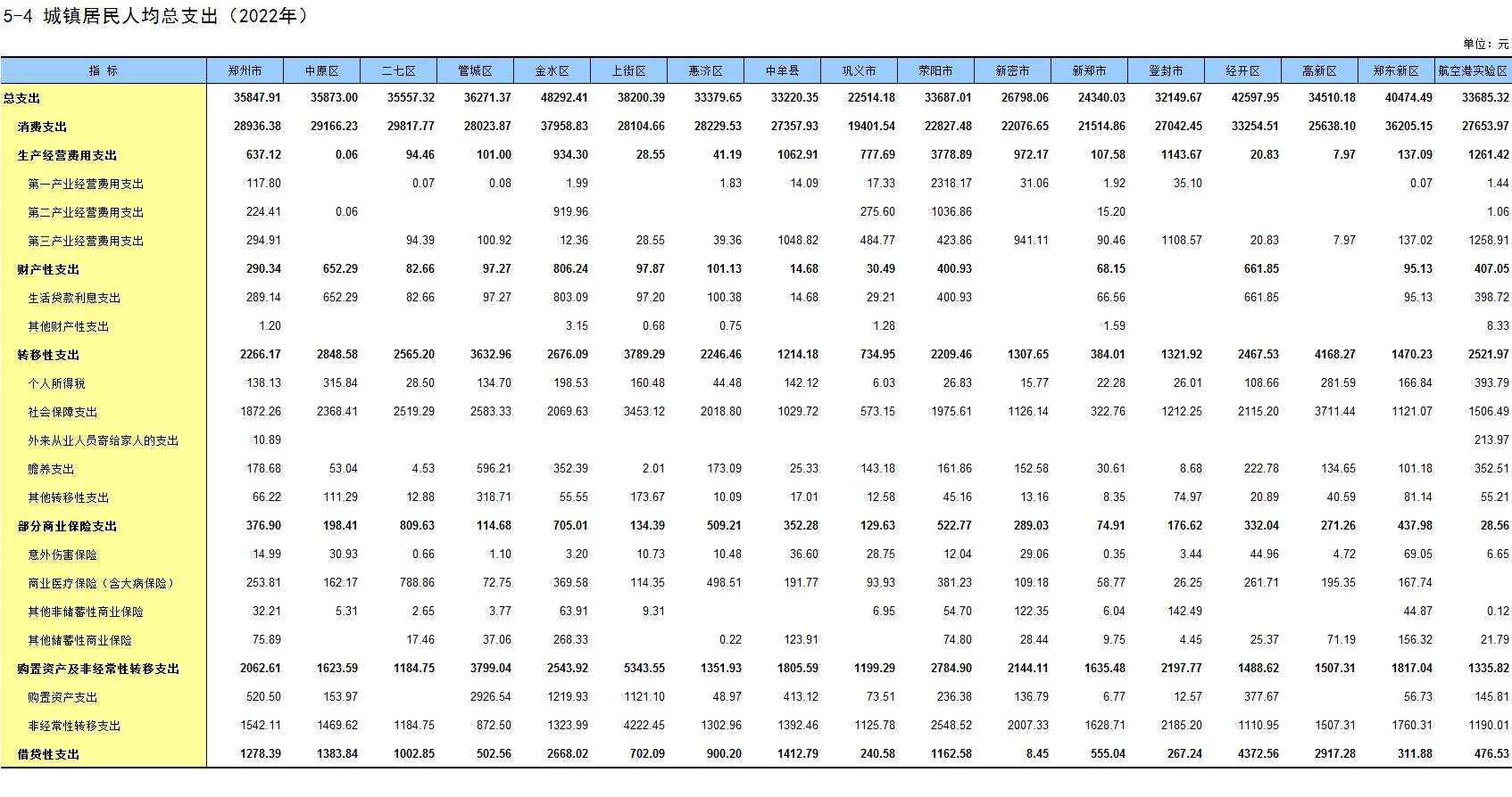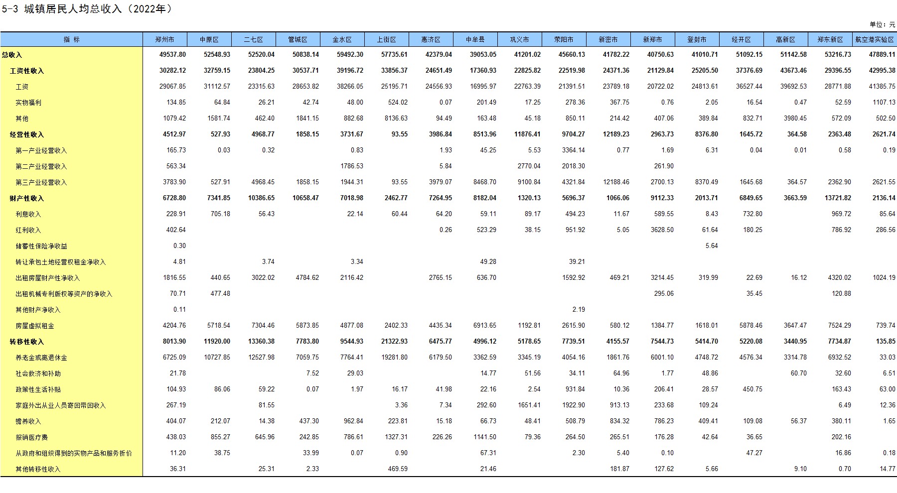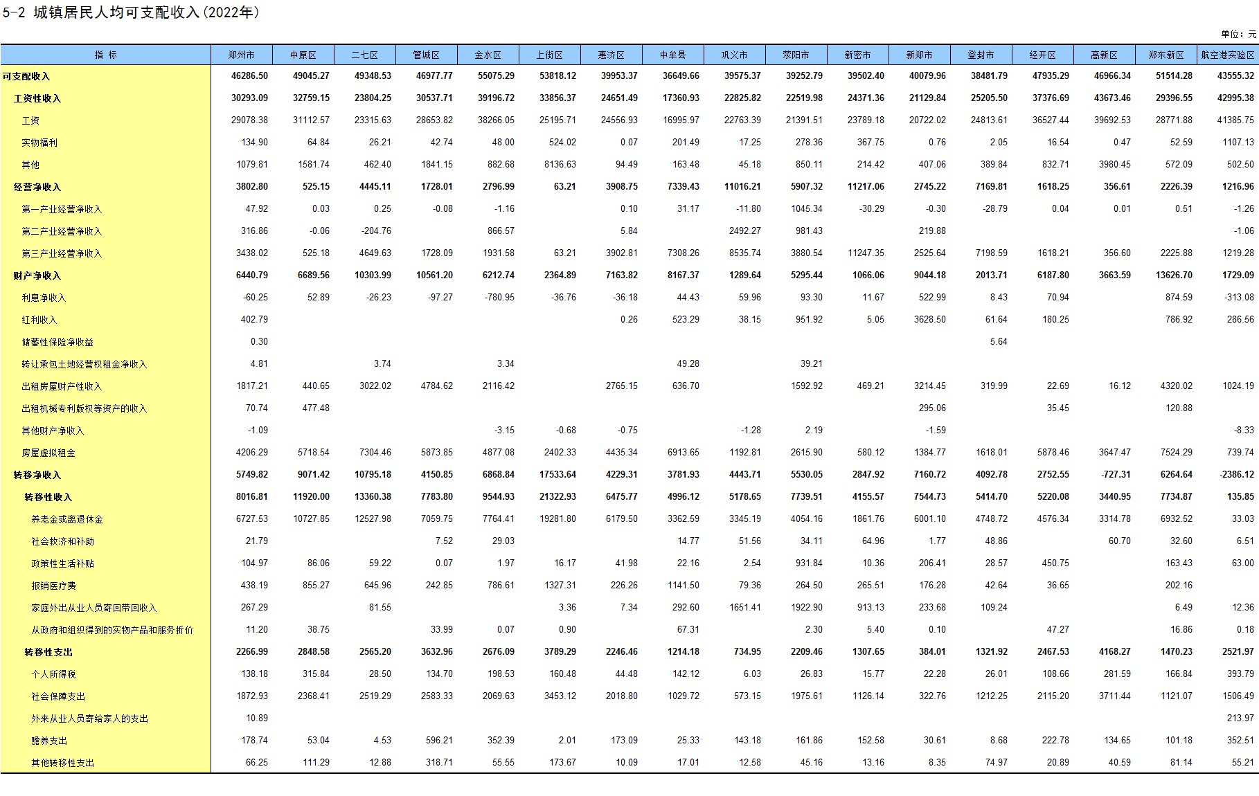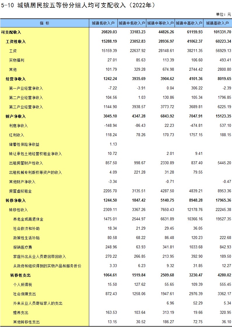 5-10 城镇居民按五等份分组人均可支配收入(2022年)