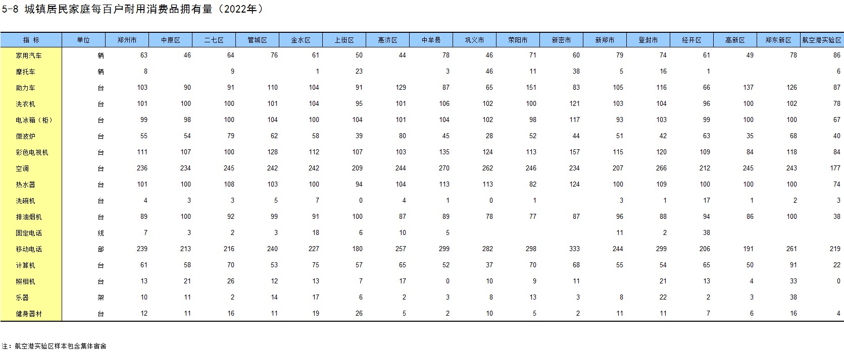 5-8 城镇居民家庭每百户耐用消费品拥有量(2022年)