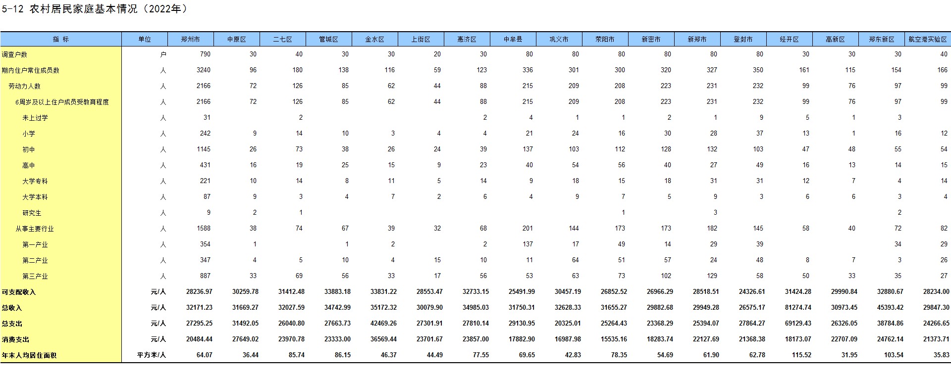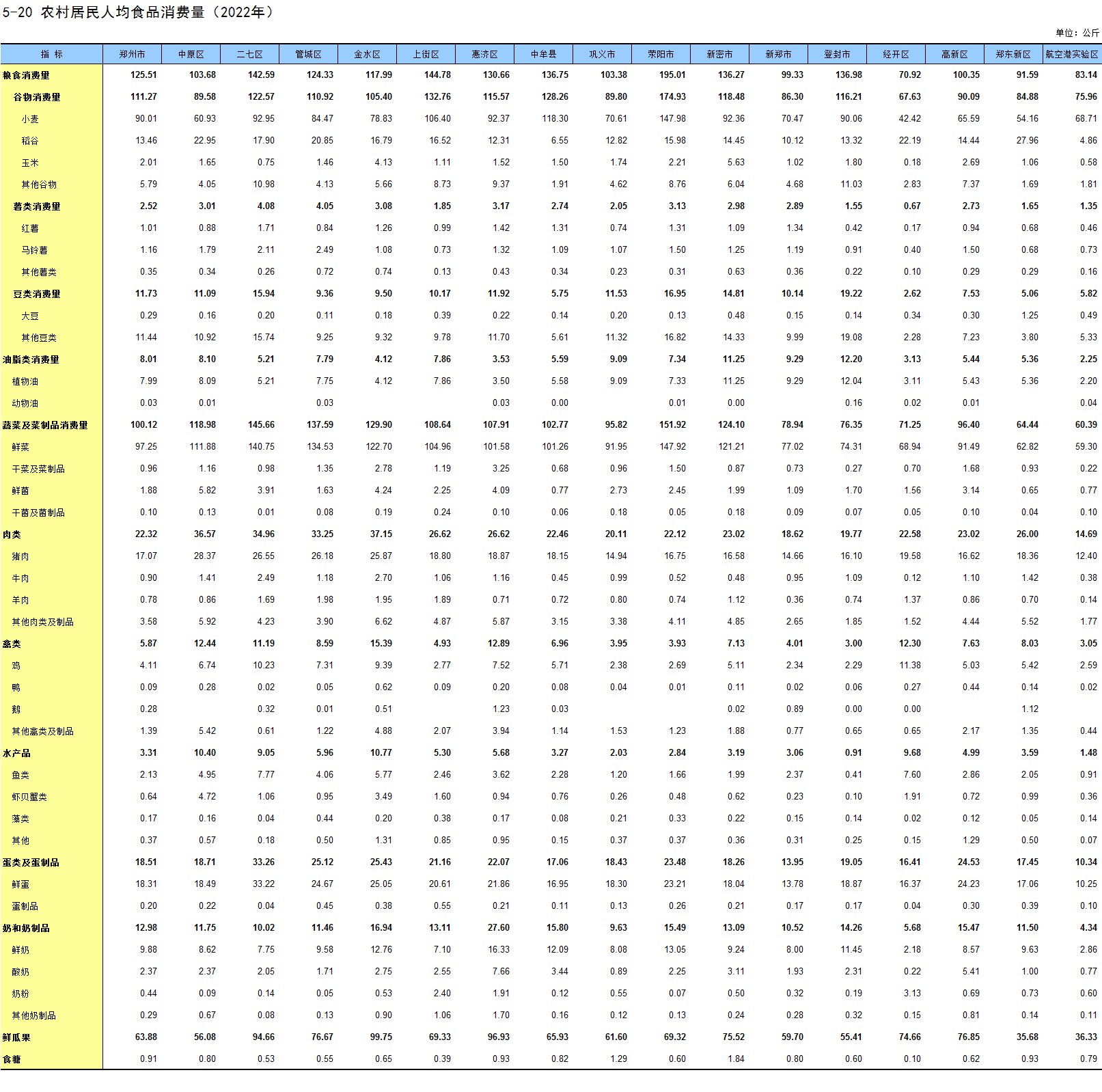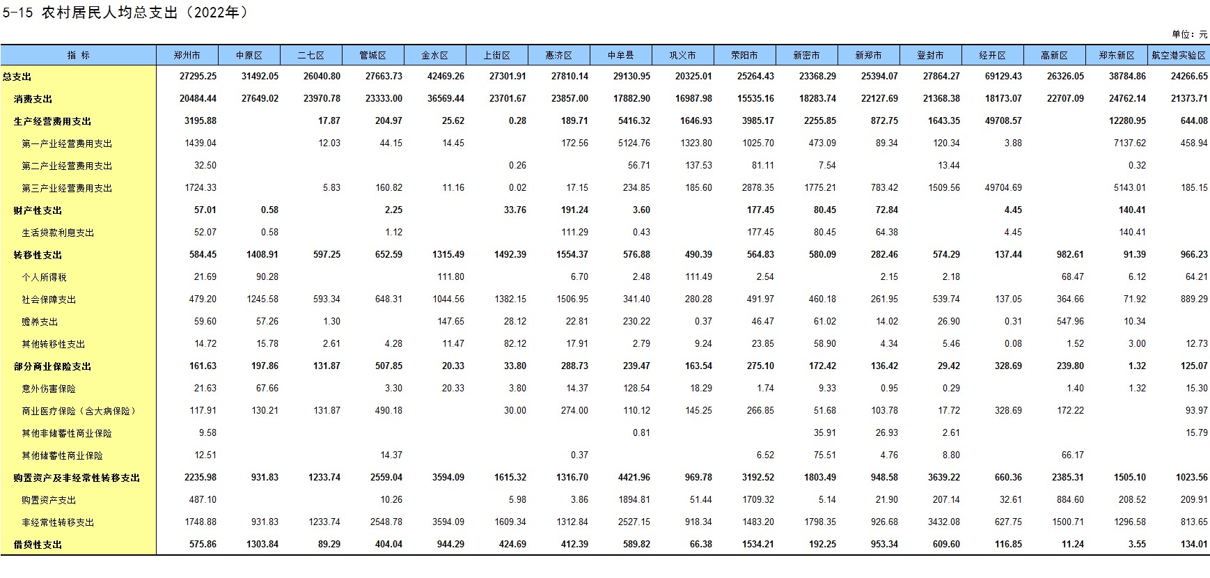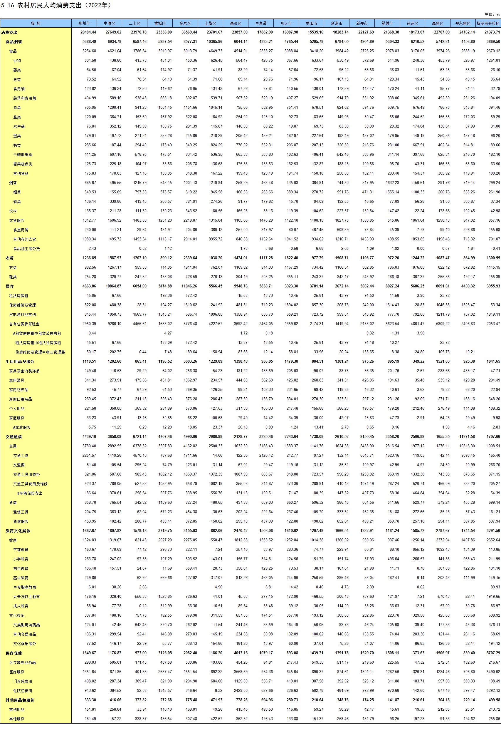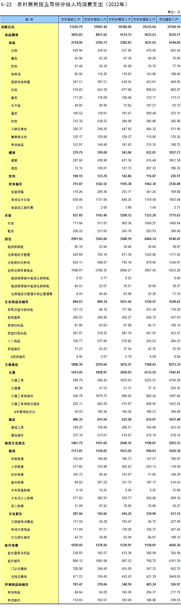 5-22 农村居民按五等份分组人均消费支出(2022年)