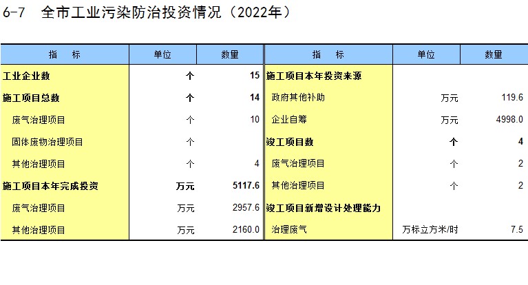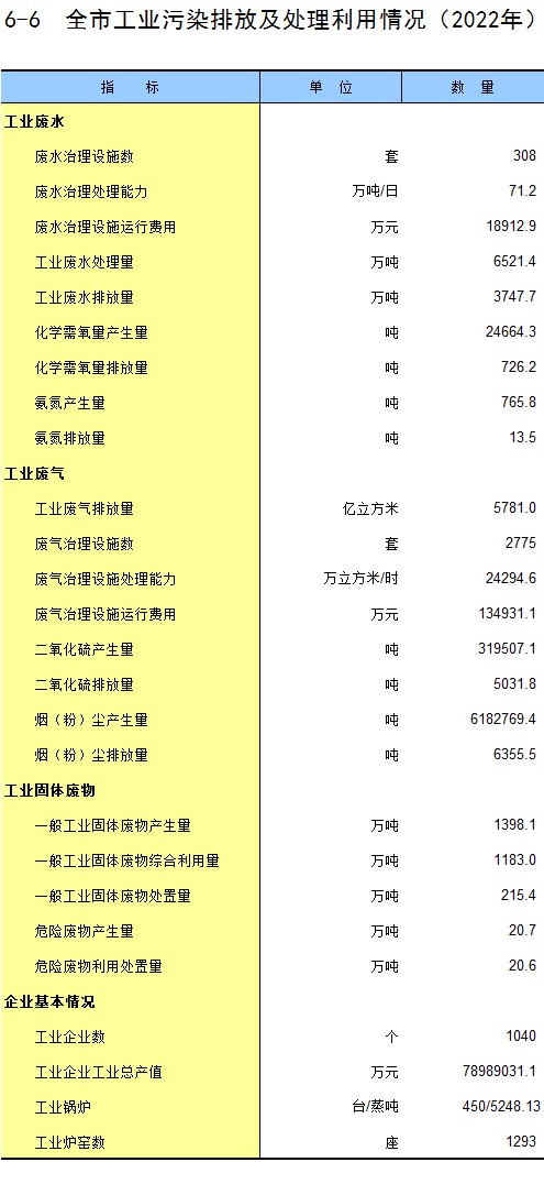 6-6 全市工业污染排放及处理利用情况(2022年)