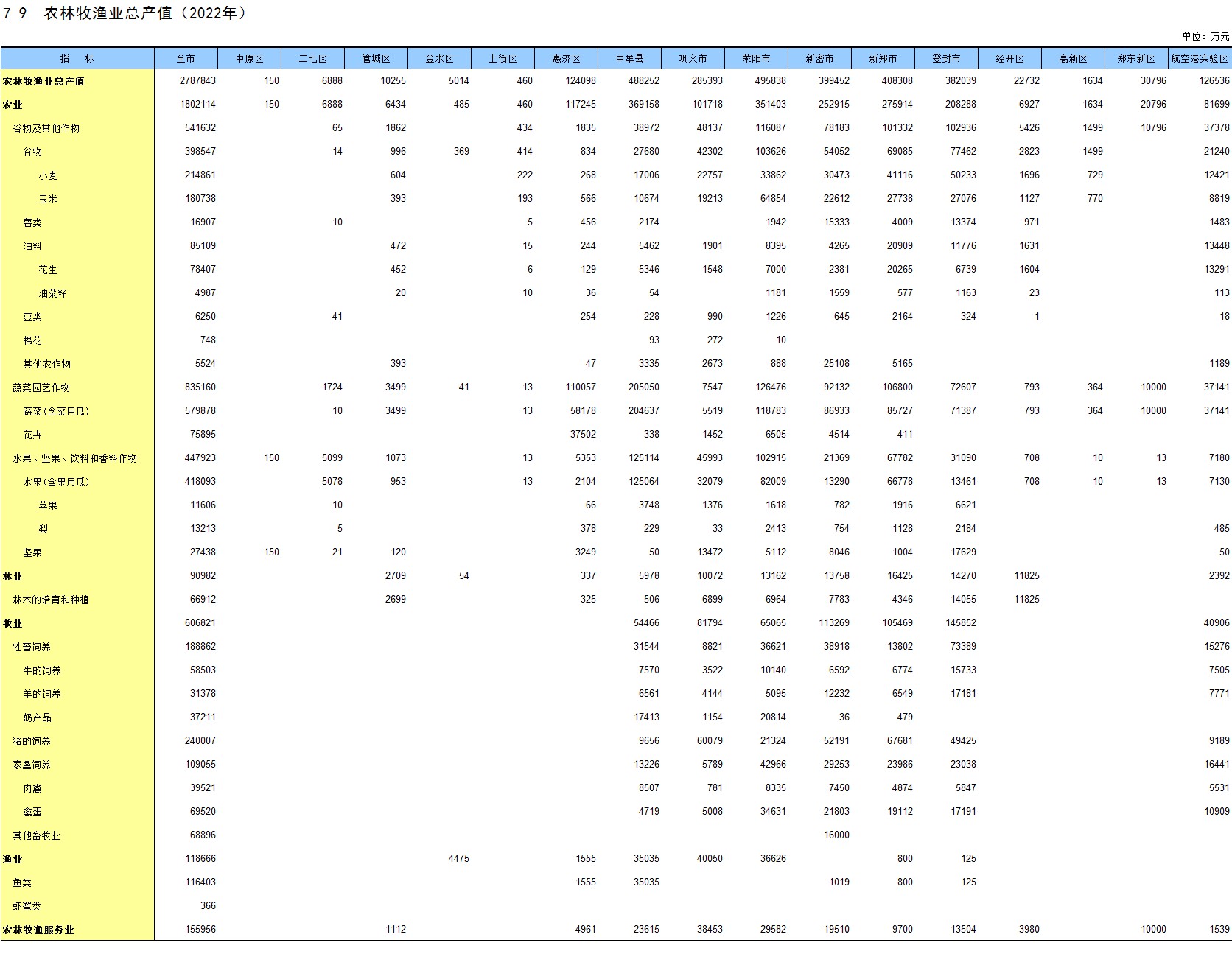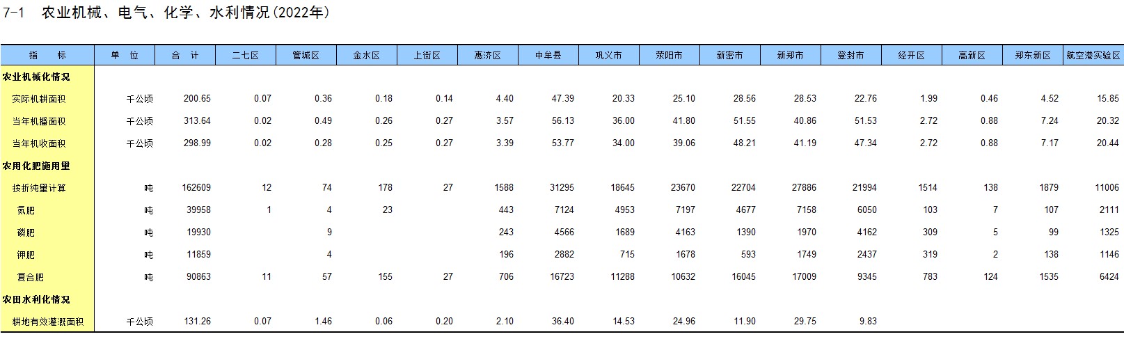 7-1 农业机械、电气、化学、水利情况(2022年)