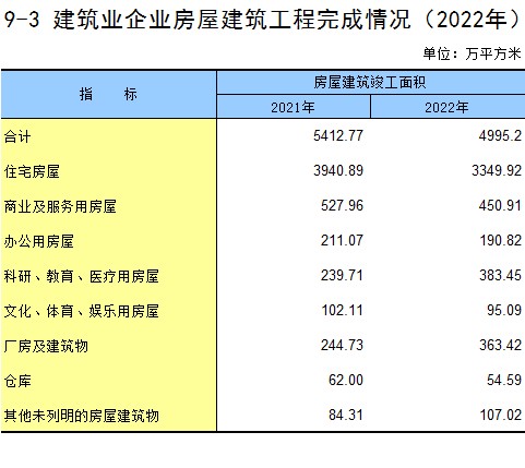 9-3 建筑业企业房屋建筑工程完成情况(2022年)