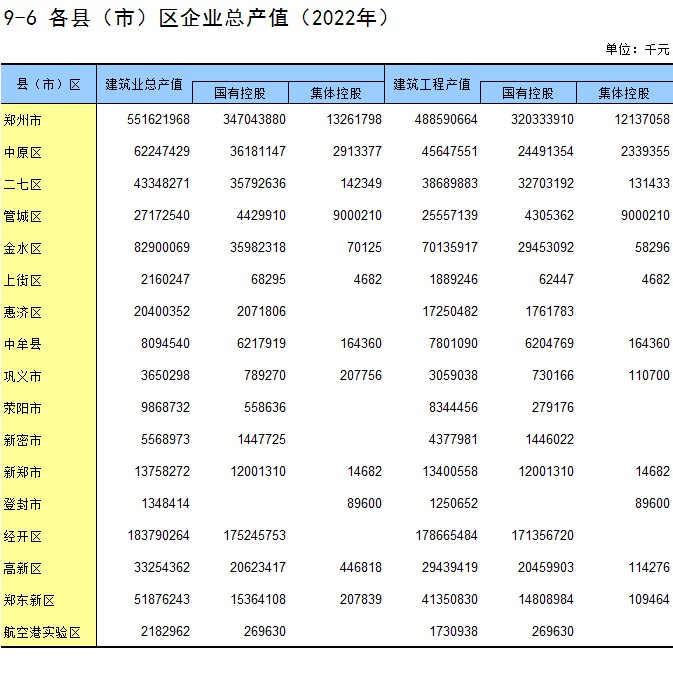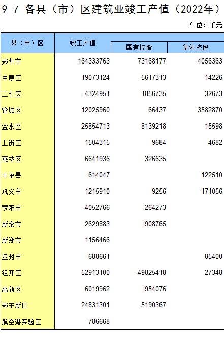 9-7 各县(市)区建筑业竣工产值(2022年)