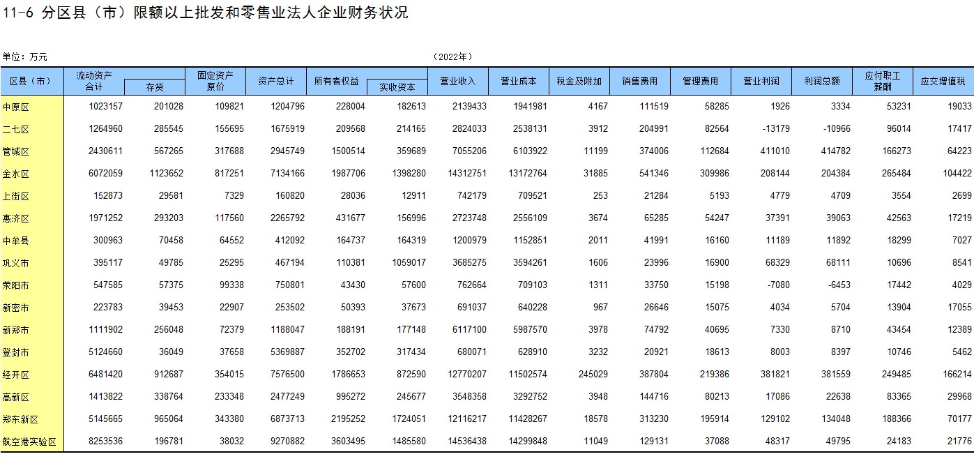 11-6 分区县(市)限额以上批发和零售业法人企业财务状况