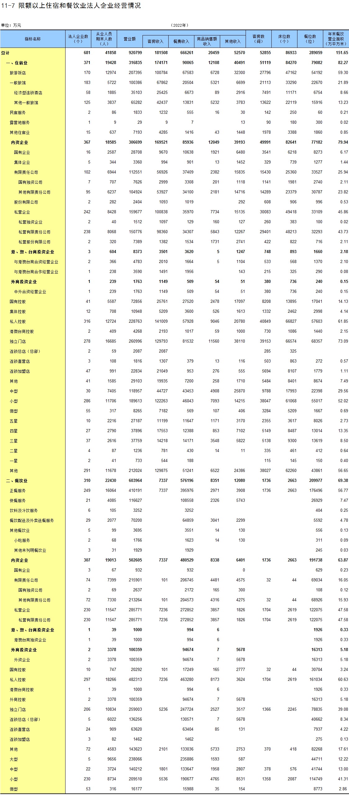 11-7 限额以上住宿和餐饮业法人企业经营情况