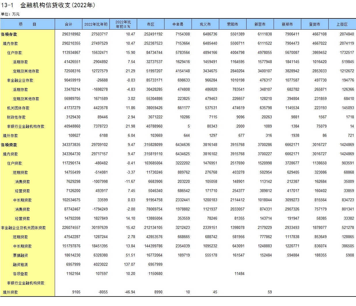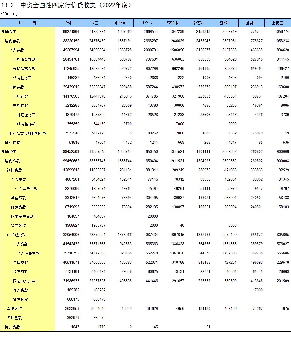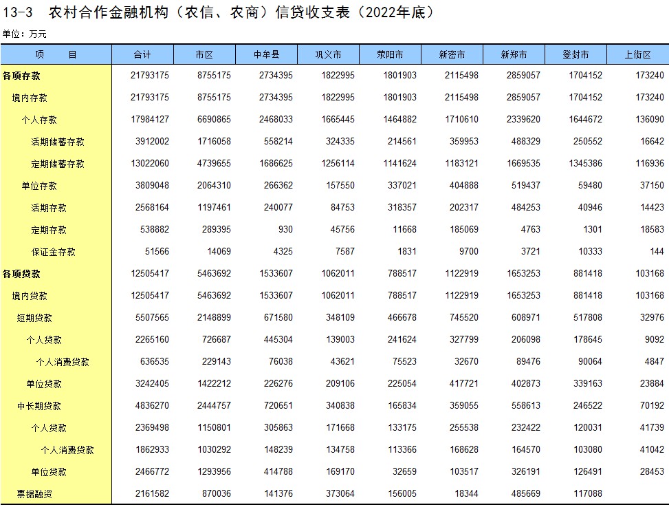 13-3 农村合作金融机构(农信、农商)信贷收支表(2022年底)