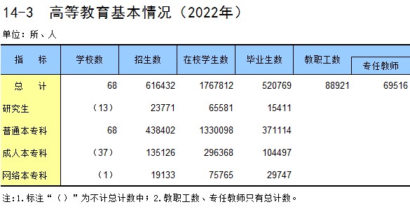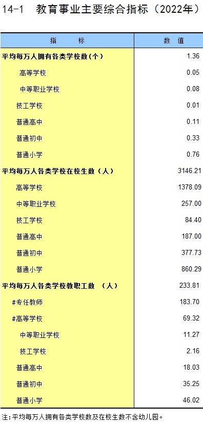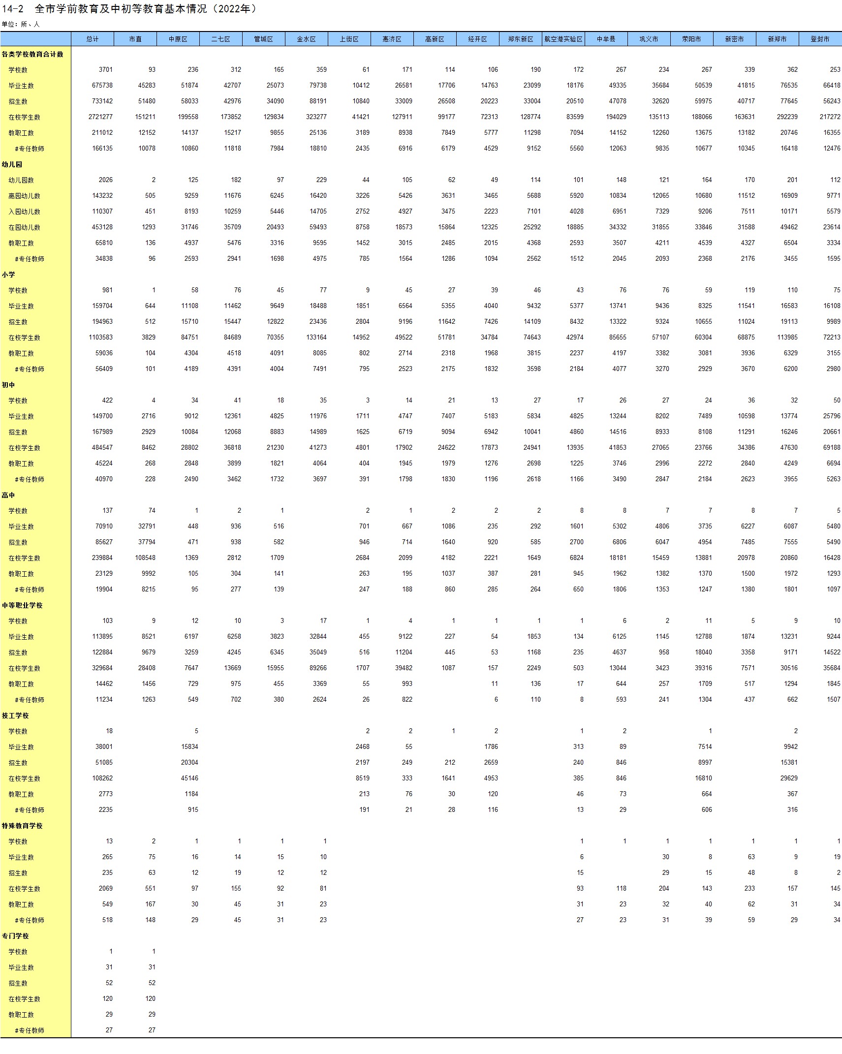 14-2 全市学前教育及中初等教育基本情况(2022年)