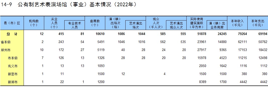 14-9 公有制艺术表演场馆(事业)基本情况(2022年)