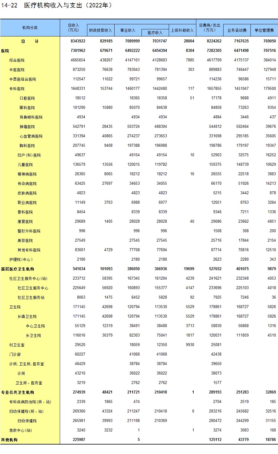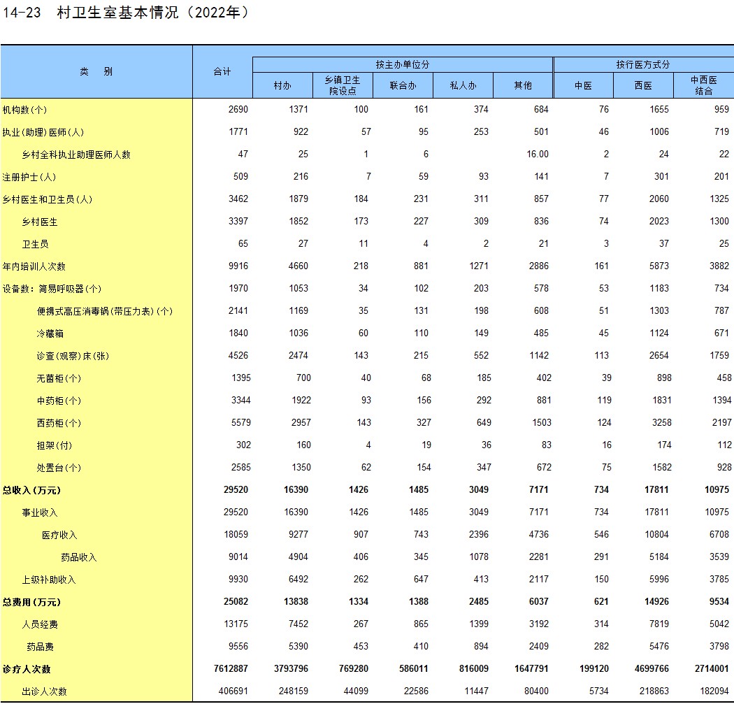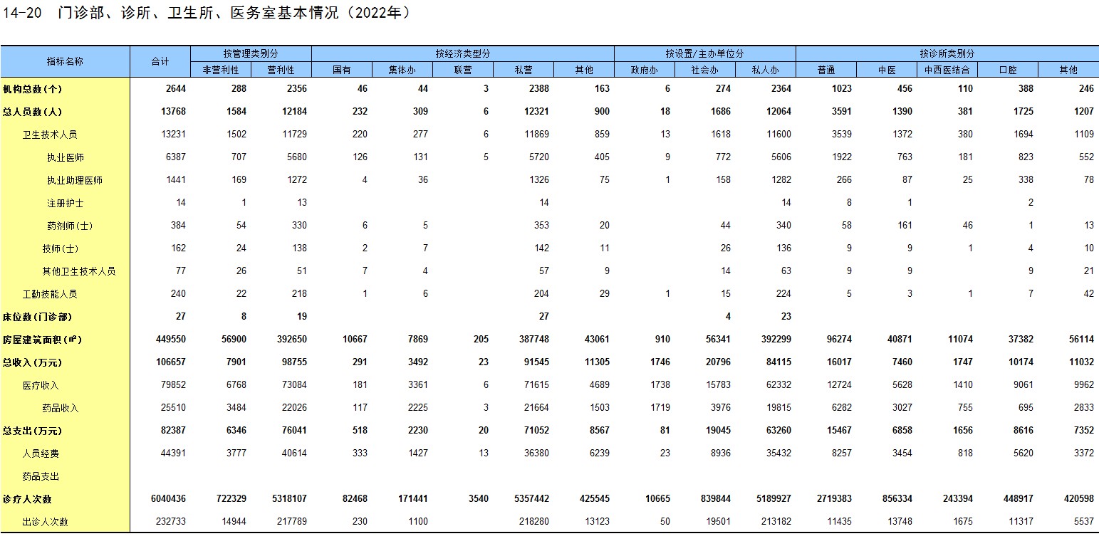 14-20 门诊部、诊所、卫生所、医务室基本情况(2022年)