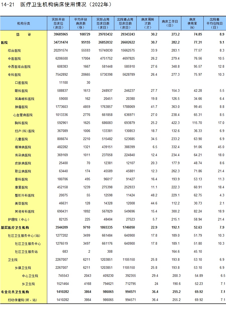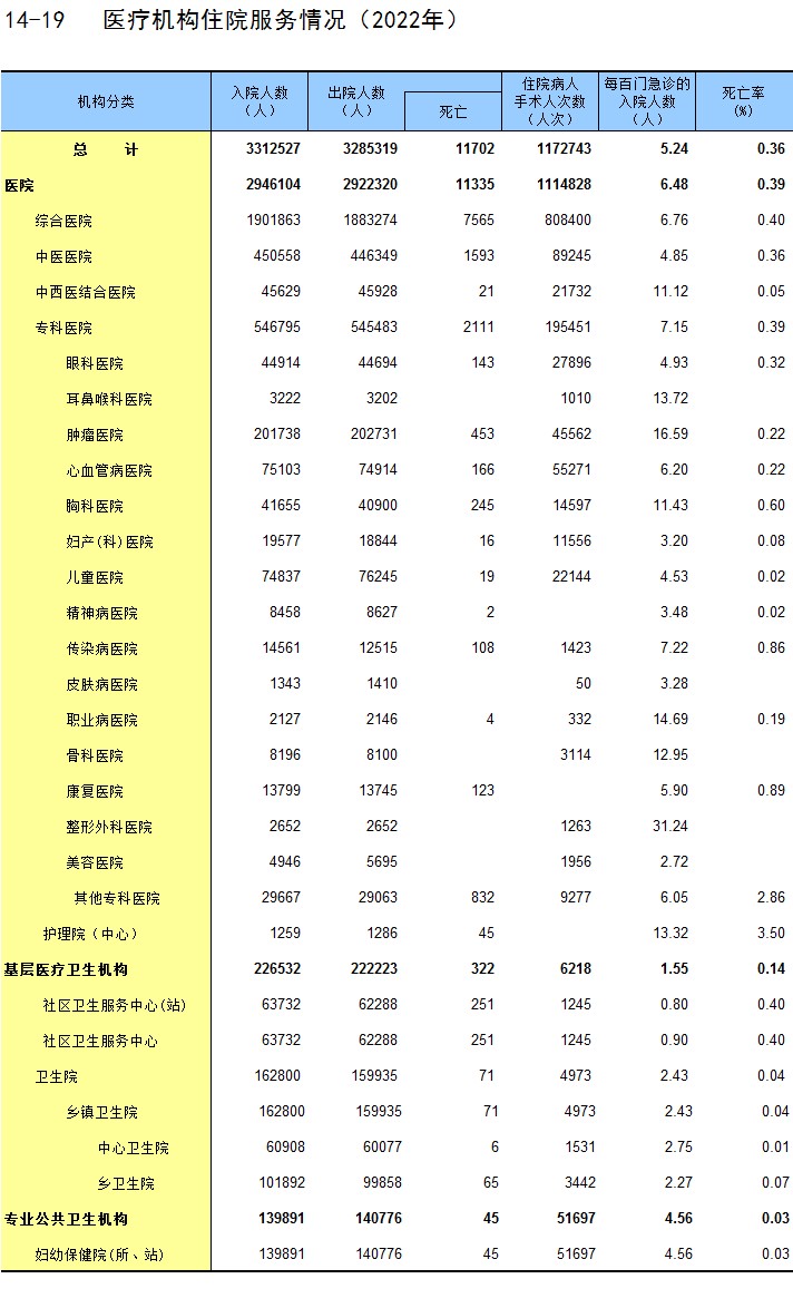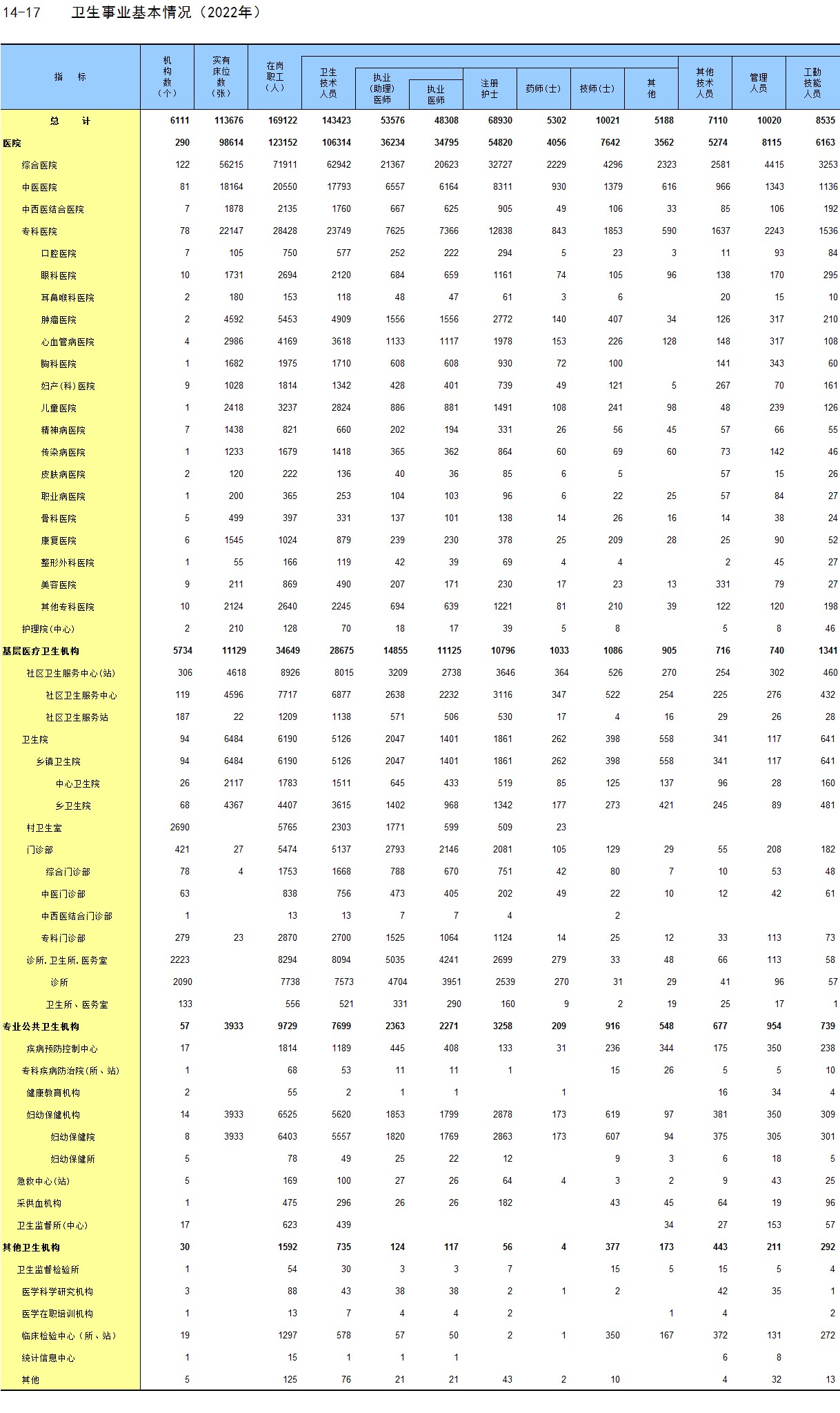 14-20 门诊部、诊所、卫生所、医务室基本情况(2022年)