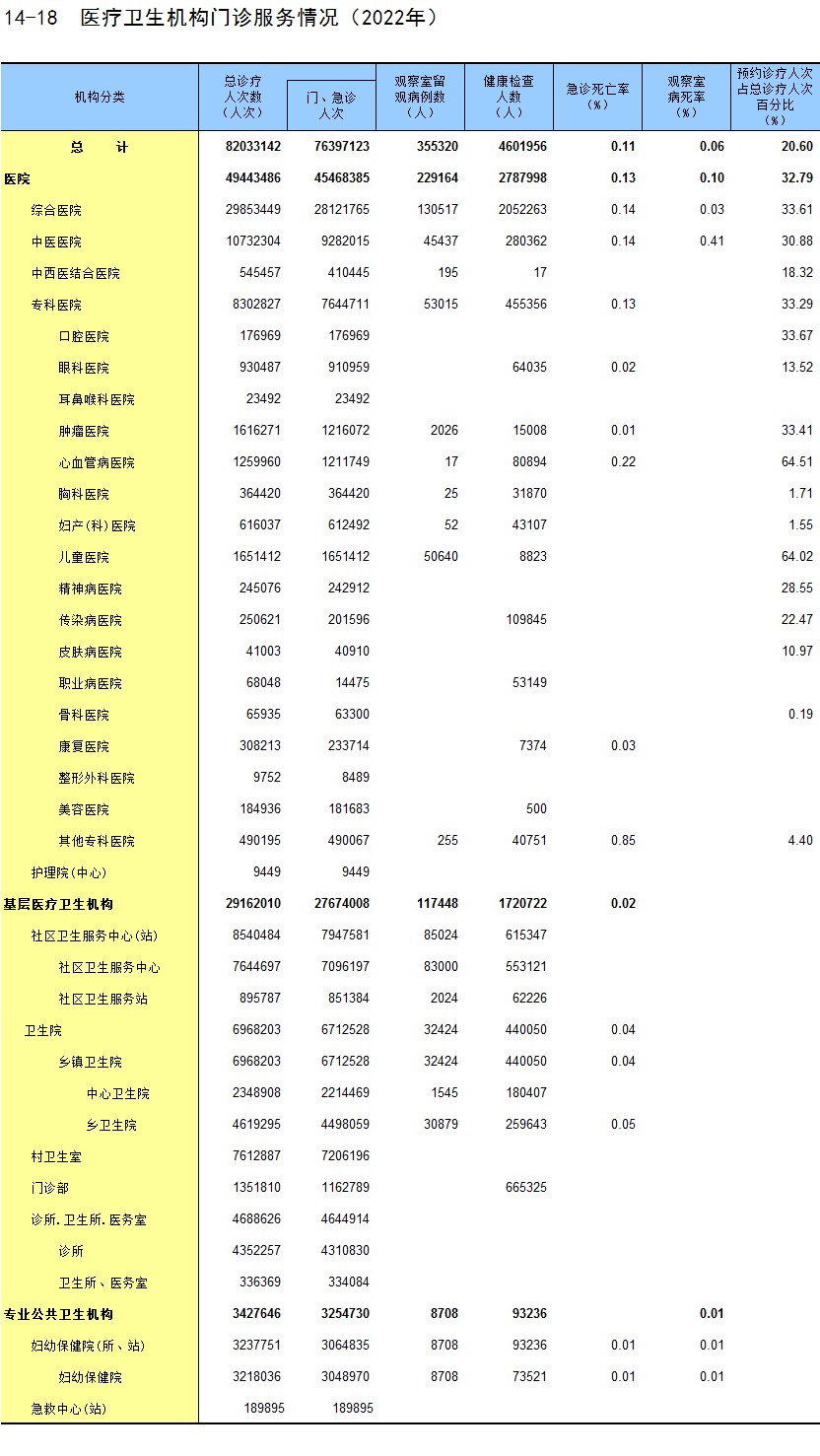 14-18 医疗卫生机构门诊服务情况(2022年)