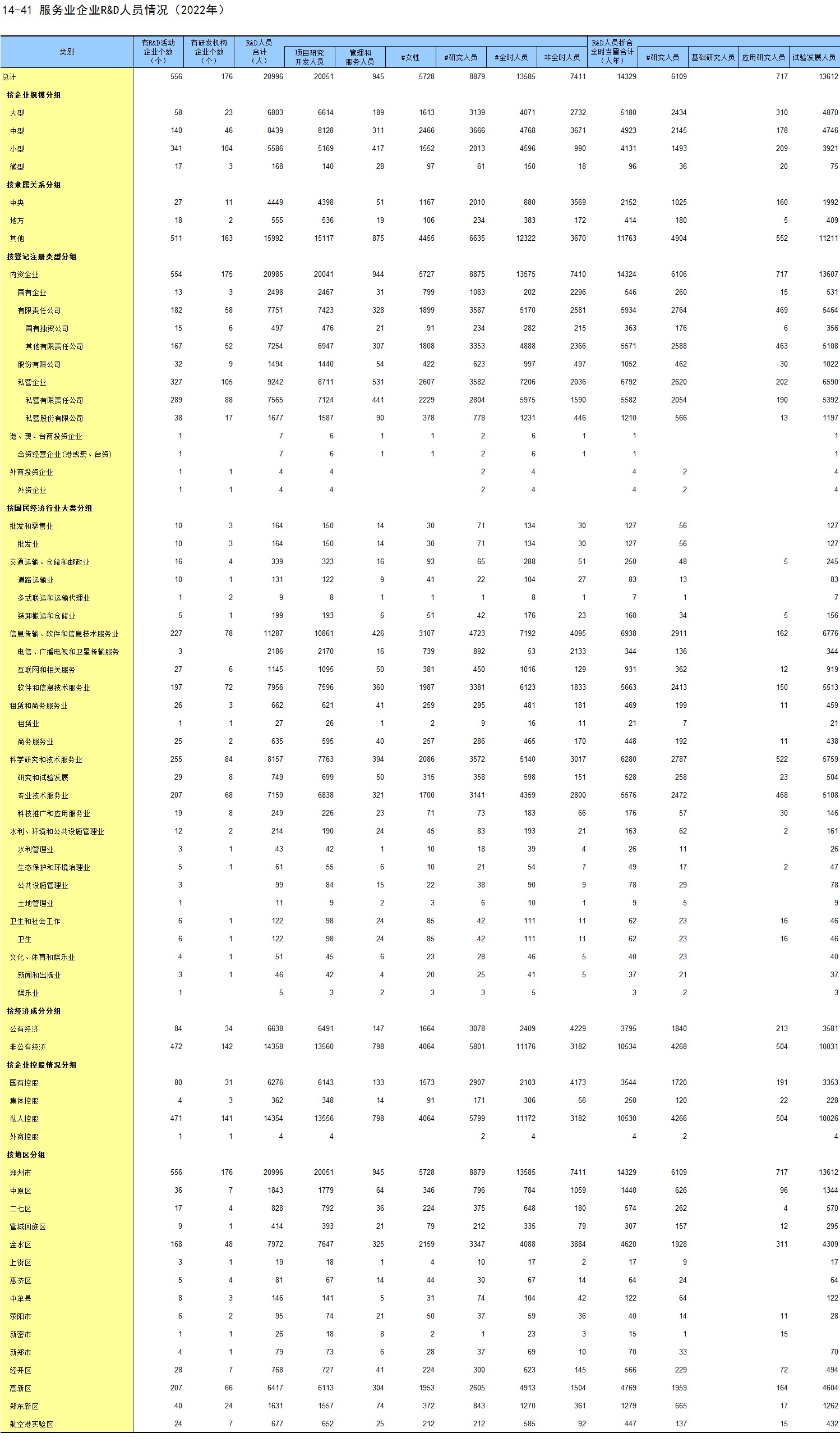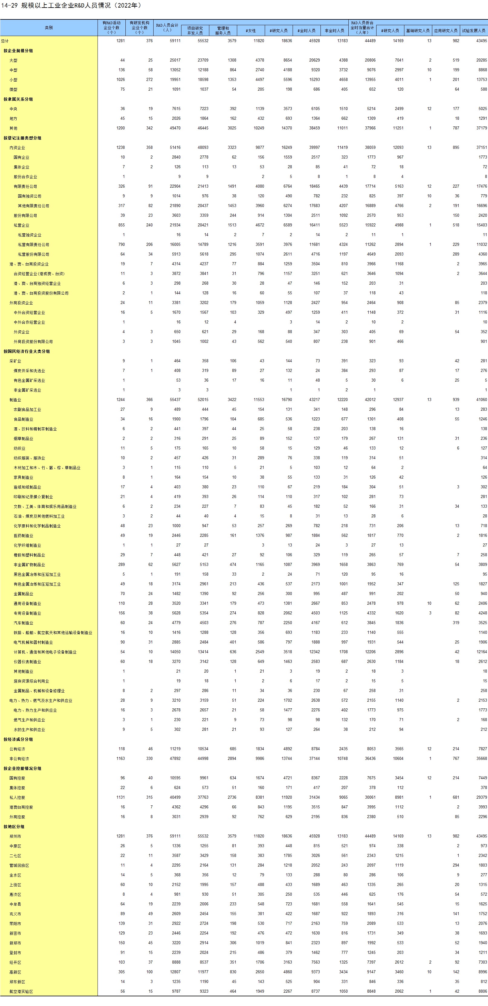 14-29 规模以上工业企业R&D人员情况(2022年)
