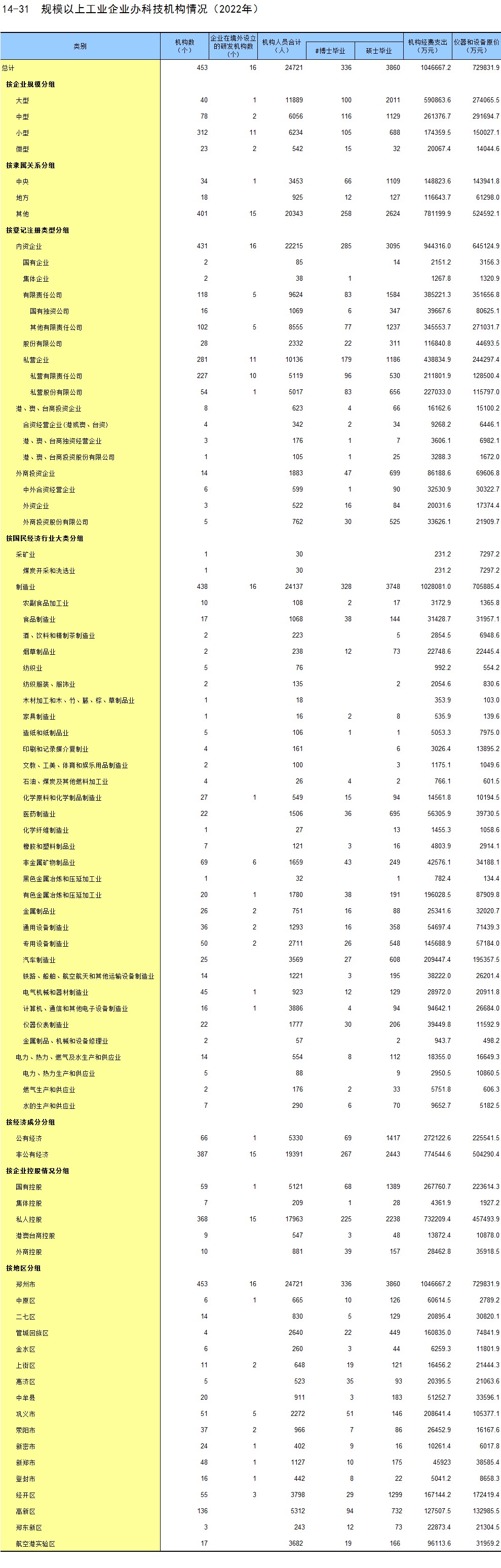 14-31 规模以上工业企业办科技机构情况(2022年)