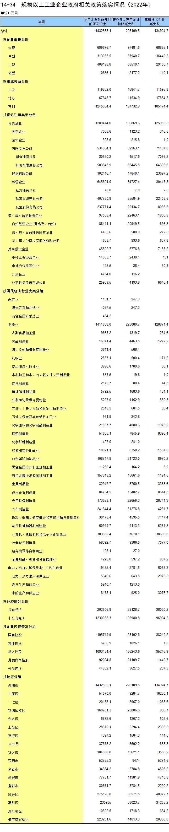 14-34 规模以上工业企业政府相关政策落实情况(2022年)