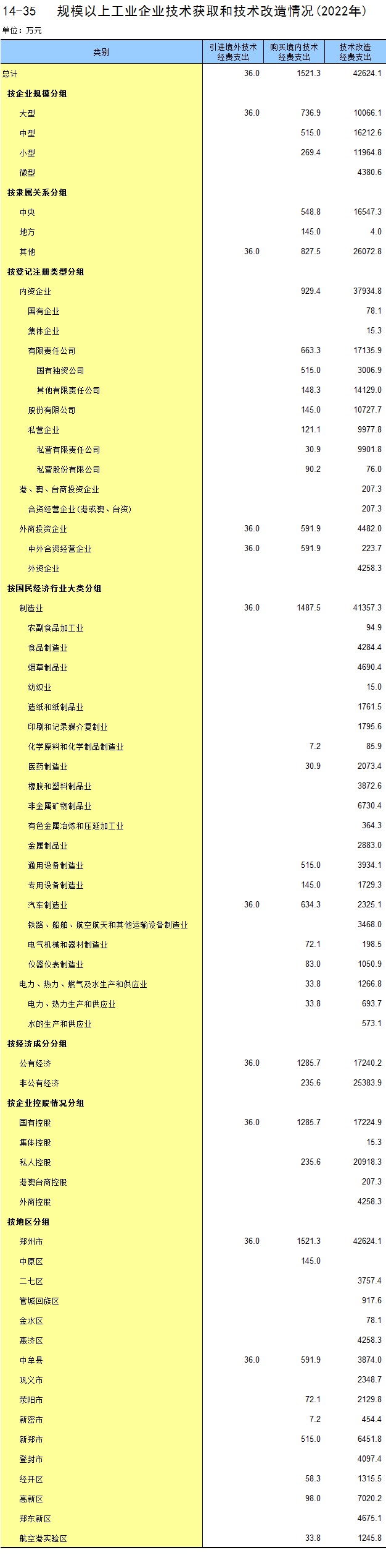 14-35 规模以上工业企业技术获取和技术改造情况(2022年)