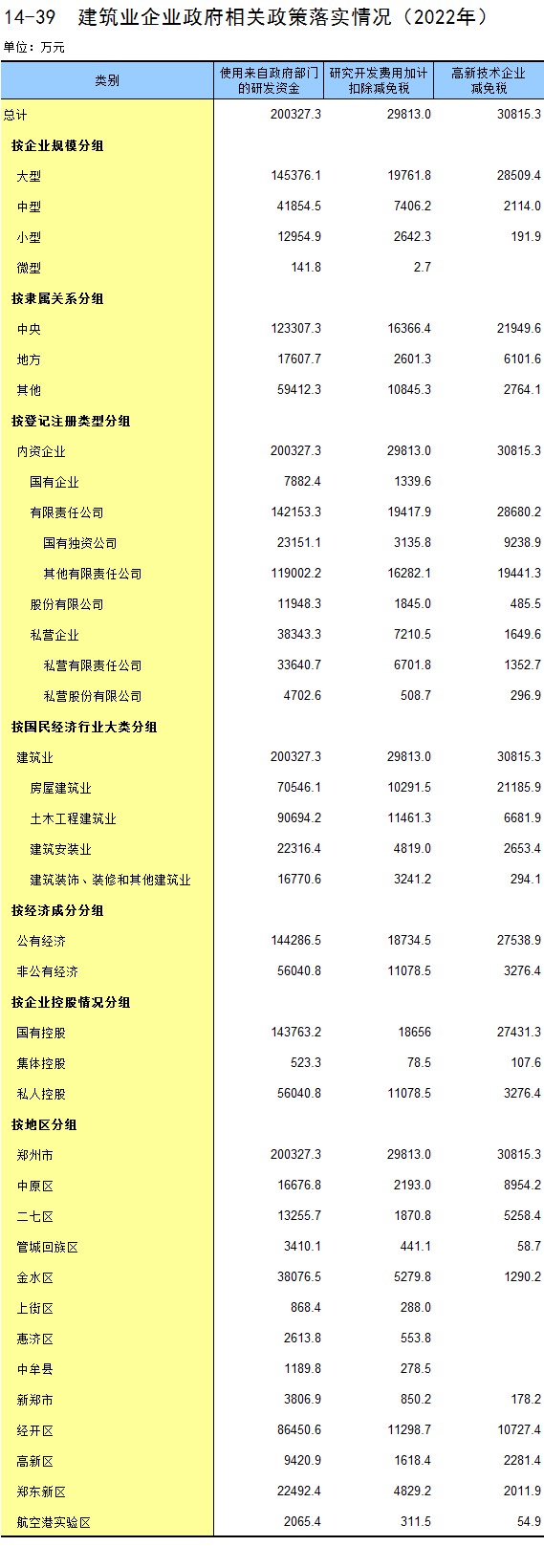 14-39 建筑业企业政府相关政策落实情况(2022年)