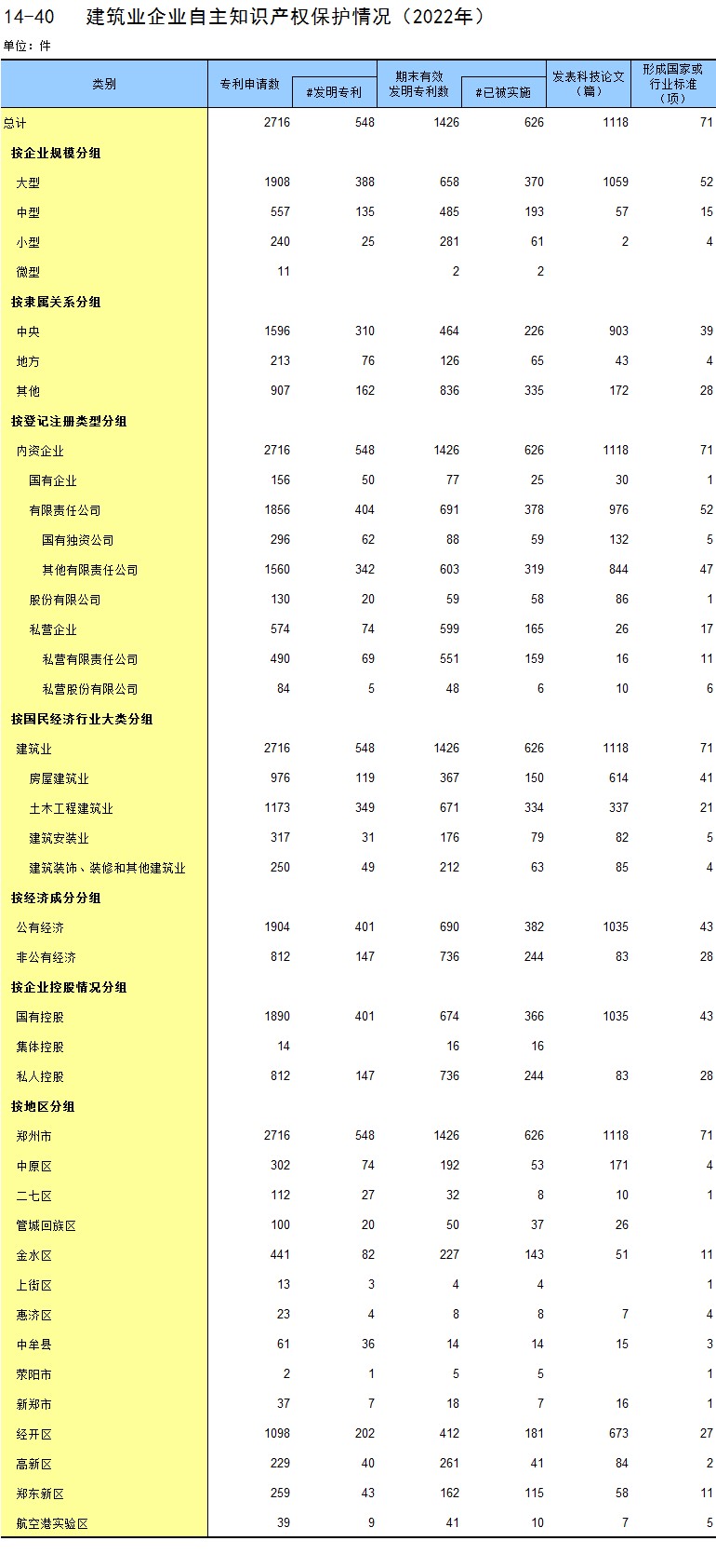 14-40 建筑业企业自主知识产权保护情况(2022年)