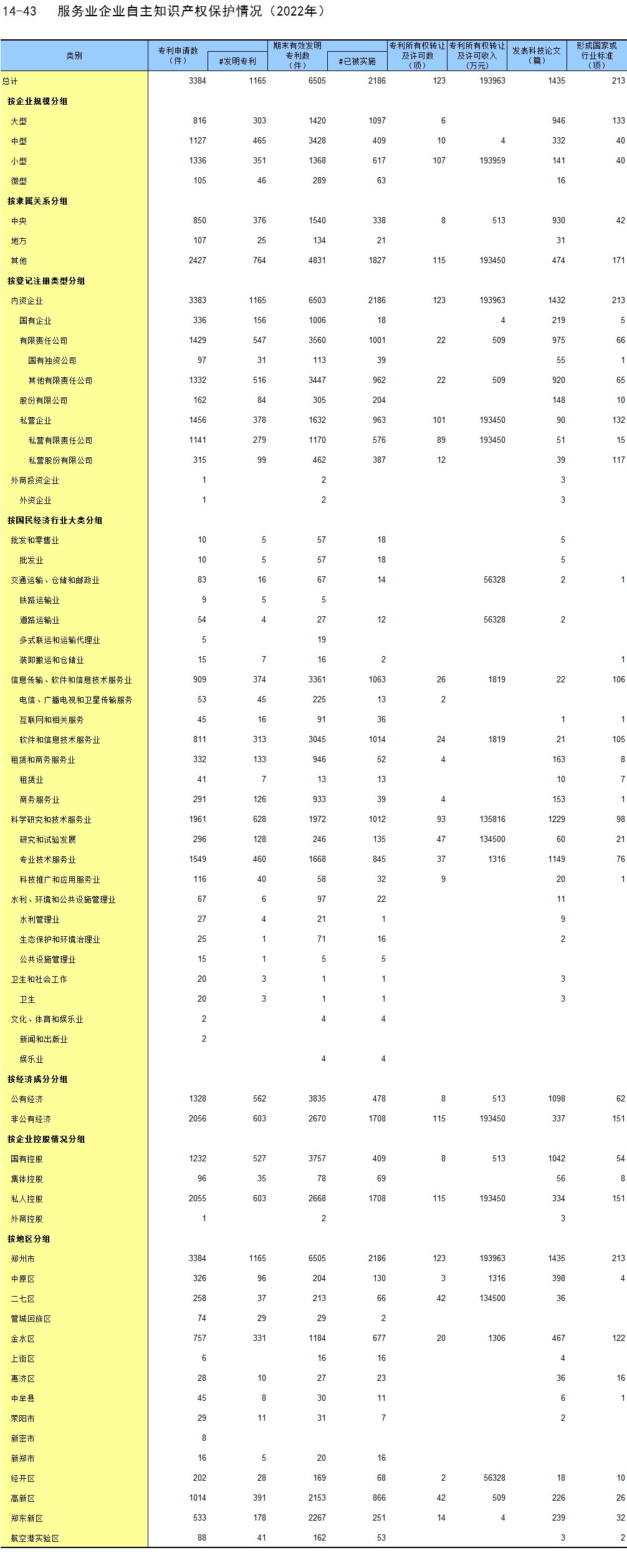 14-43 服务业企业自主知识产权保护情况(2022年)