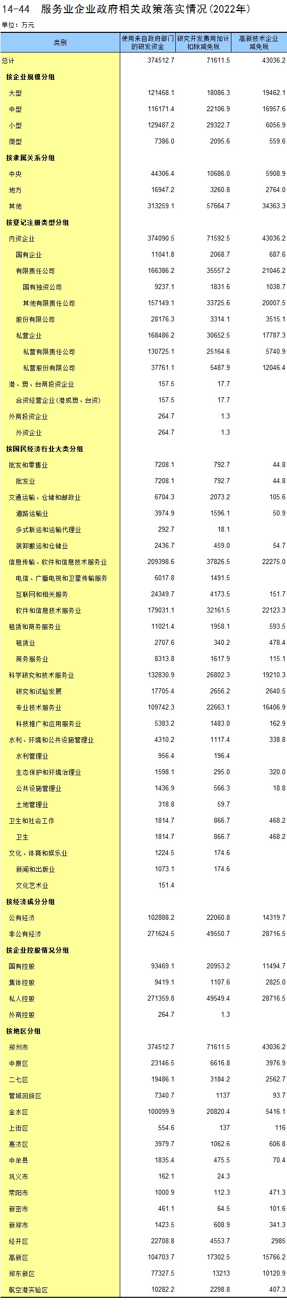 14-44 服务业企业政府相关政策落实情况(2022年)